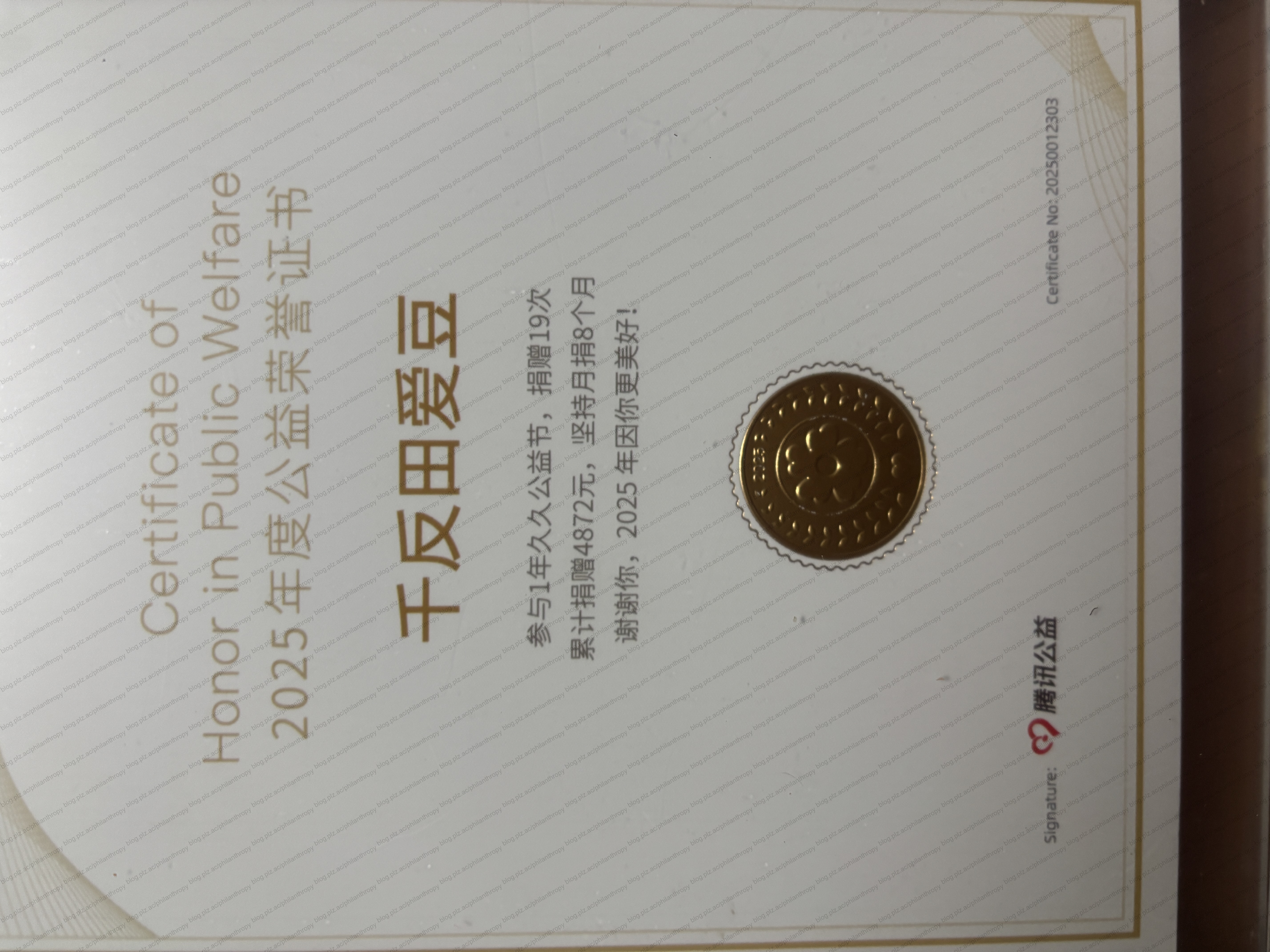 延续 2024 年 11 月开始的计划,今年全年捐款 4872 元。