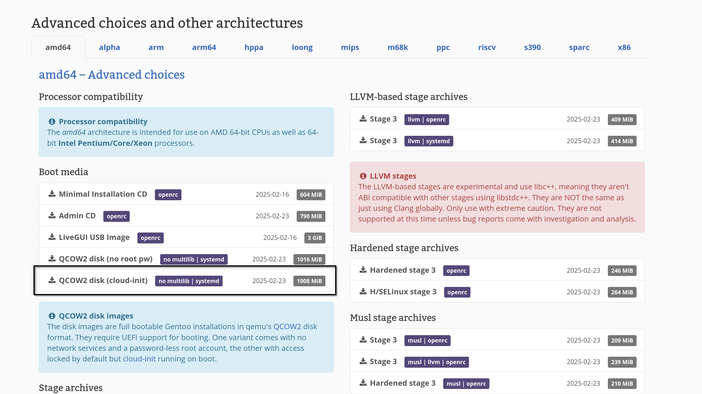 wget -c https://distfiles.gentoo.org/releases/amd64/autobuilds/20250223T170333Z/di-amd64-cloudinit-20250223T170333Z.qcow2